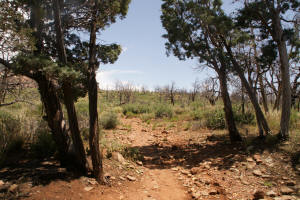 fire involving Brins Mesa. Many burnt and dead trees can be
